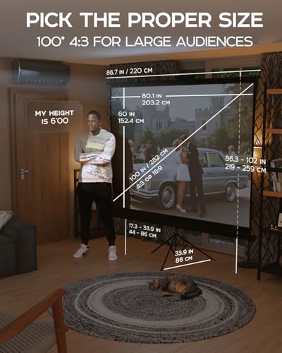 PropVue - شاشة جهاز عرض مع حامل 100 انش - شاشة عرض داخلية وخارجية لعرض الافلام او المكتب - قابلة للتعديل من 16:9 الى 4:3 شاشة ثلاثية القوائم عالية الدقة خالية من التجاعيد لجهاز العرض