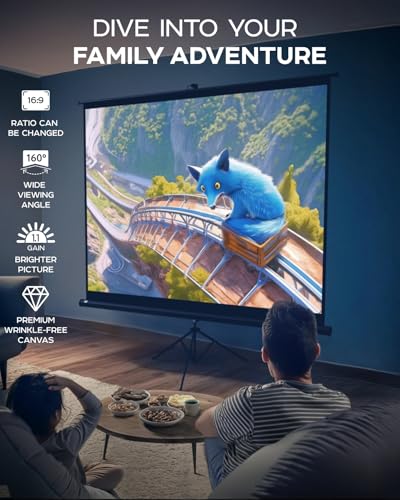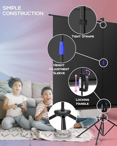 - شاشة العرض مع حامل وبلاستيك PVC غير اللامع الخالي من التجاعيد على الحامل الثلاثي يمنحك رؤية مناسبة للأفلام والألعاب أو العروض التقديمية بجودة فائقة