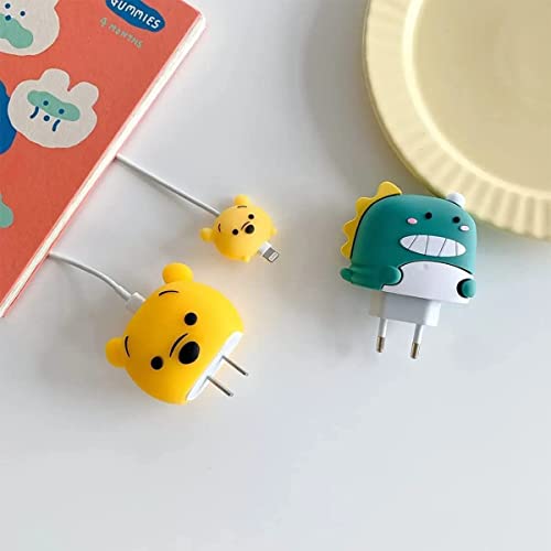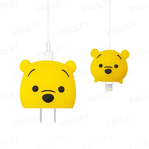 Prolet - جراب حماية لشاحن محول طاقة بمنفذ USB لموبايل آيفون 18W و20W وكابل لايتنينج USB، جراب اكسسوارات شخصية كرتونية ثلاثية الأبعاد للمحول (الدب ويني ذا بووه) من بروليت