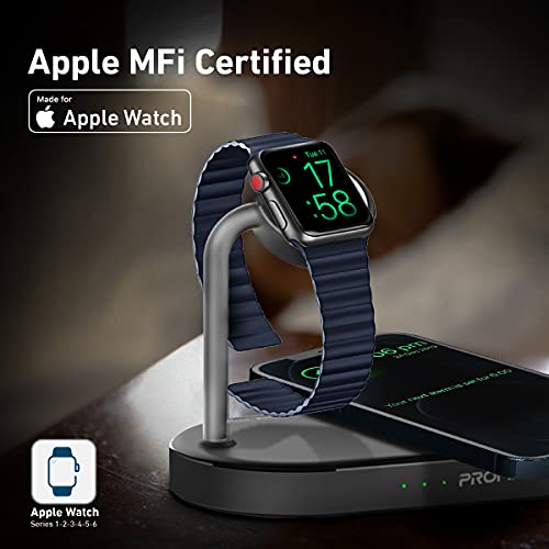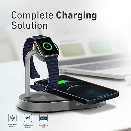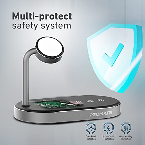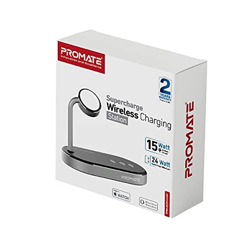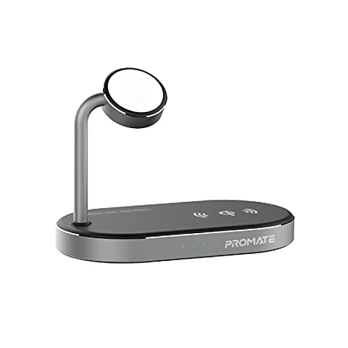 Promate - حامل شاحن لاسلكي من الالومنيوم بروميت، قاعدة شحن لاجهزة متعددة ويف باور مع لوحة سريع بقدرة 15 وات تشي، بمنفذ USB للشحن الفائق 24 وشاحن ساعة ابل 5 وات، معتمد