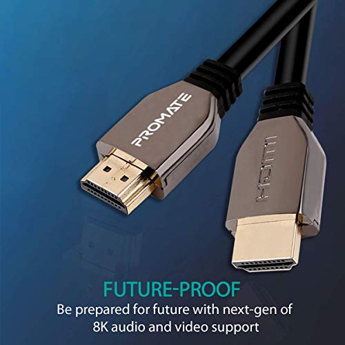 Promate - كابل HDMI 2.1 سلك عالي السرعة بجودة 48 جيجابايت في الثانية 8K الى مع تقنية التصوير بالمدى الديناميكي HDR بطول 2 متر ودعم فيديو ثلاثي الابعاد للتلفزيونات HD عالية الدقة موديل برولينك8k-200