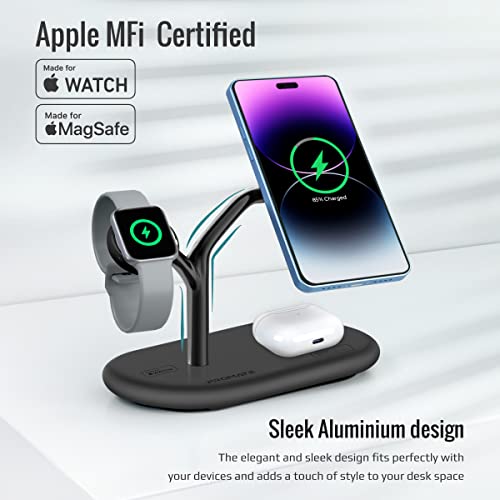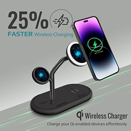 Promate - قاعدة شحن مغناطيسية بشاحن ساعة آبل 5 وات معتمد من ام اف اي، حامل شحن 15 وات، منفذ USB-C لتوصيل الطاقة 24 وات، قاعدة شحن كيو اي 5/10 وات لأجهزة ايربودز برو وآيفون 14 واي باد اير من بروميت، سينيرجي أسود