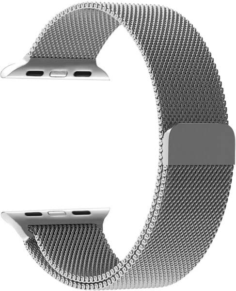 Promate - سوار ميلانو لساعة آبل مقاس 38 ملم/40 ملم من بروميت، سوار بديل شبكي متين من الفولاذ المقاوم للصدأ مع مشبك إغلاق مغناطيسي قوي قابل للتعديل لساعة آبل 1 و2 و3 و4، لون فضي، موديل Milous-38