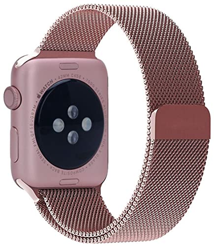 Promate - سوار بديل من الفولاذ المقاوم للصدأ بحلقة ميلانو عالية الجودة لساعة آبل 38 ملم/40 ملم مع قفل مغناطيسي وسوار قابل للتعديل لساعة آبل 1، 2، 3، 4، ميلوس-38 من بروميت، لون وردي