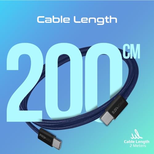 Promate - كابل شحن USB نوع سي، كابل شحن ومزامنة قوي من النوع سي مع توصيل طاقة سريع بقدرة 60 وات، ونقل بيانات بسرعة 480 ميجابت لكل ثانية وسلك مضفر بالنايلون مقاس 200 متر، من بروميت موديل ايكولاين-CC200