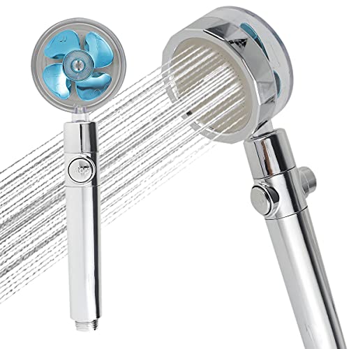 Your's Bath - راس دش بمروحة تربو - بخاخ موفر للمياه دوار 360 درجة - طقم حمام قابل للفصل بشاحن توربيني للبالغين والأطفال والحيوانات الأليفة (أزرق)