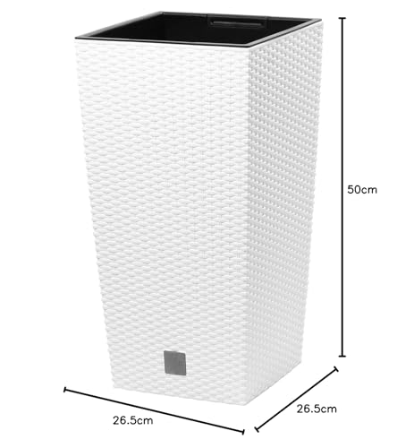 Prosperplast - أصيص زهور راتو مربع مقاس 26.5 سم، أبيض من بروسبر بلاست