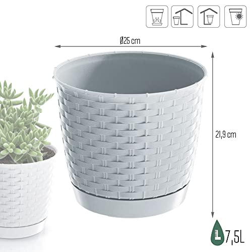 Prosperplast - أصيص زهور راتولا دائري مقاس 25 سم من بروسبير بلاست، لون أبيض