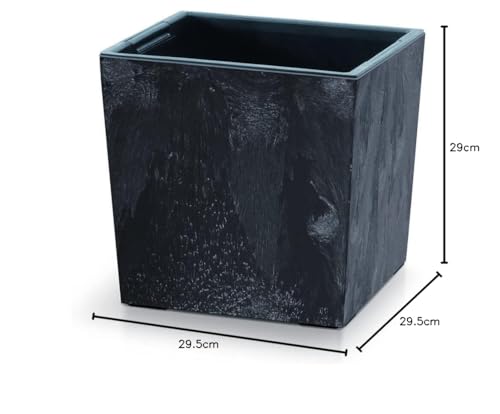 Prosperplast - أصيص زهور اوربي مربع منخفض بتأثير الخرسانة من بروسبيربلاست، لون أزرق غامق، مقاس 29.5 سم