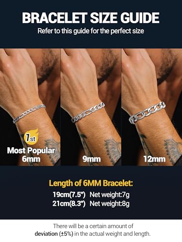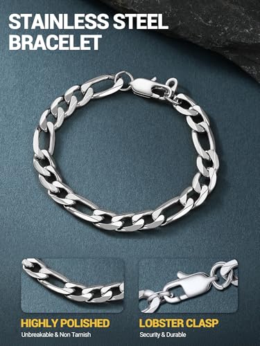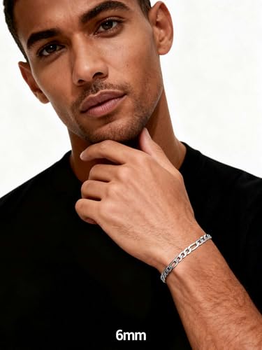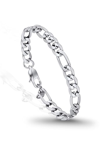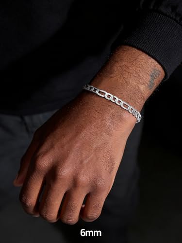 PROSTEEL - سوار بروستيل من الستانلس ستيل 316L للرجال والنساء بتصميم سلاسل فيجارو خالي النيكل ومضاد للحساسية واسود- ذهبي- فضي عرض 6 ملم- 13 7.5-8.3 بوصة- ياتي بعبوة هدية 7.5 inches معدن