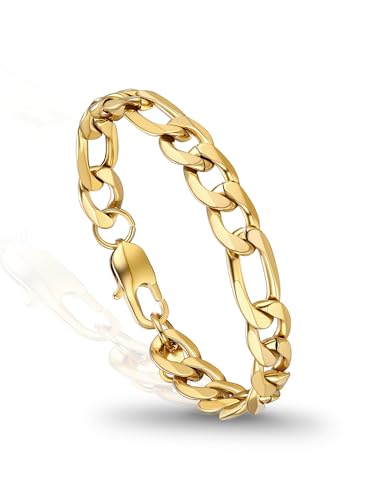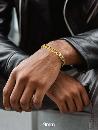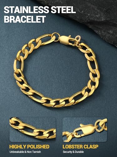 PROSTEEL - سوار بروستيل من الستانلس ستيل 316L للرجال والنساء بتصميم سلاسل فيجارو خالي من النيكل ومضاد للحساسية واسود/ذهبي/فضي عرض 6 ملم/13 ملم- 7.5/8.3 بوصة،علبة هدايا, 7 5 inch, معدن