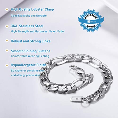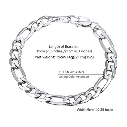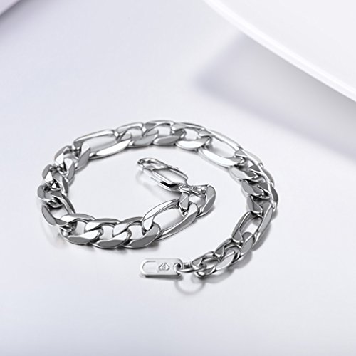 PROSTEEL - بروستيل سوار سلسلة فيجارو عصري للرجال مكتنز من الستانلس ستيل للنساء هدية مجوهرات يومية، عرض 9 ملم 7.5 انش