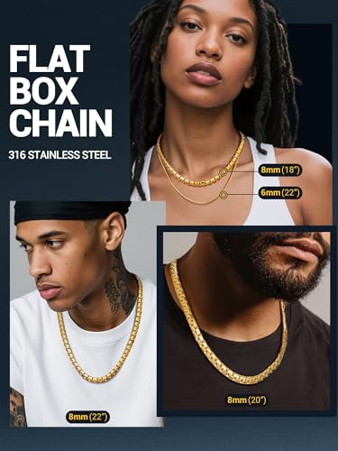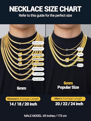 PROSTEEL - سلسلة أنيقة بحلقات دائرية من الفولاذ مقاوم للصدأ للرجال من بروستيل، 2 ملم/ 4 ملم/ 6 ملم/ 8 ملم. لون فضي/ذهبي/أسود، مجوهرات مضادة للحساسية، 35.6 -76.2 سم، تأتي مع علبة