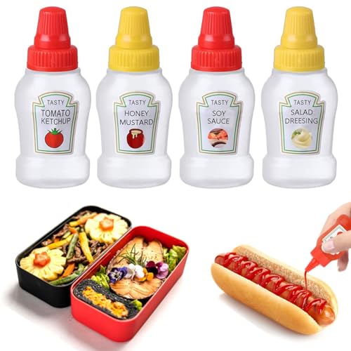 - محتويات العبوة: قطعتان من زجاجات الكاتشب الفارغة بغطاء أحمر وأصفر. السعة 25 مل. المقاس 7.5 × 3.2 سم. يمكنك وضع الصلصة المفضلة لديك في الزجاجة ووضعها في صندوق بينتو وهي مناسبة جدًا للعاملين في المكاتب، ويمكنك الاستمتاع بشهي في أي وقت وفي أي مكان