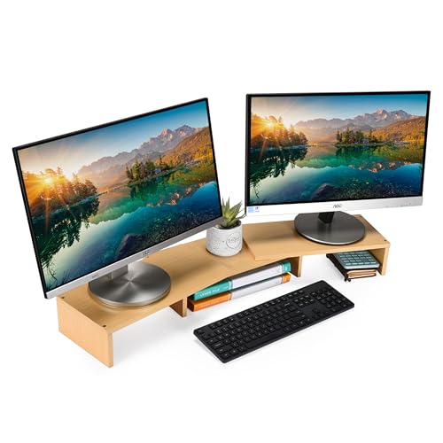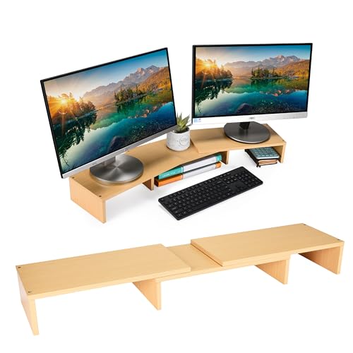Prosumer's Choice - حامل شاشة مزدوج، مع حامل خشبي قابل للتعديل ورف تخزين، مناسب لشاشتين ومكاتب الكمبيوتر والزوايا من بروسمرز تشويس، خشب فاتح، مقاس 80 × 24 × 10 سم