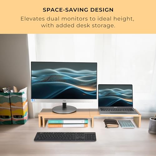 - مادة عالية الجودة: مصنوع من الخشب المتين، تم تصميم حامل الشاشة المزدوج الخاص بنا لرفع شاشتك أو اللاب توب أو التابلت إلى مستوى العين لتجربة عرض محسنة ومساحة عمل أفضل.