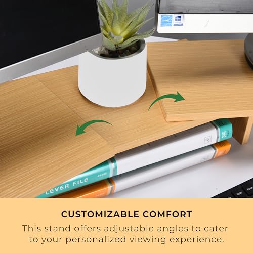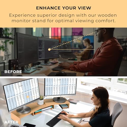 - راحة قابلة للتخصيص. يوفر حامل الشاشة الخشبي المزدوج هذا زوايا قابلة للتعديل لتلبية تجربة المشاهدة الشخصية الخاصة بك. يعزز وضعية أفضل ويساعد في تقليل الإجهاد المرتبط بالعمل.