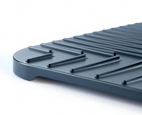 - صُمم البساط بأقدامٍ مضادة للانزلاق تعزز السطح، مما يسمح بسهولة تصريف المياه. يضمن هذا التصميم المبتكر تدفق المياه بسلاسة دون تجميع، مما يجعله إضافة عملية لأي مطبخ أو حمام.