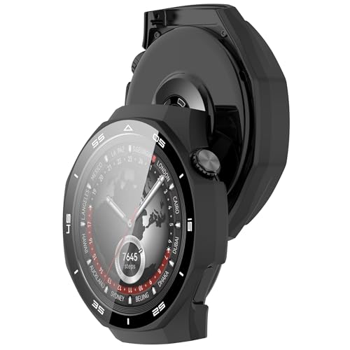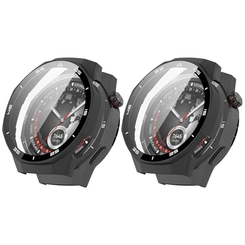 RuenTech - جراب حماية متوافق مع ساعة هواوي GT5 برو 46 ملم مع شاشة حماية، حماية شاملة من البولي كربونات مع جراب من الزجاج المقوى لساعة هواوي GT 5 برو 46 ملم، لون أسود