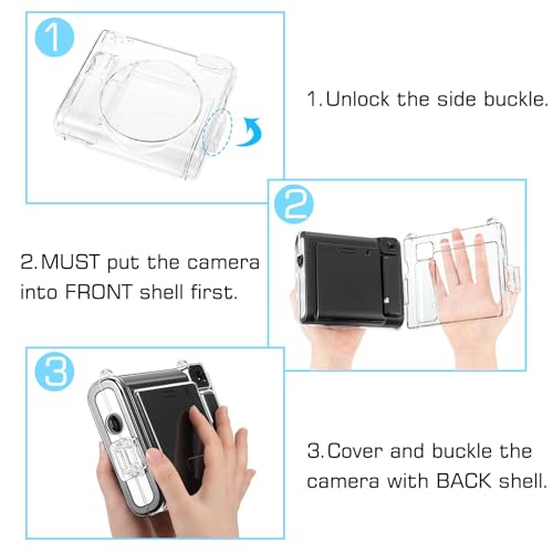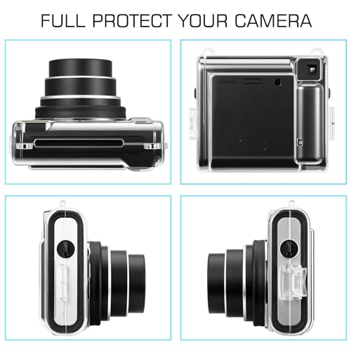 fashion mania - جراب حماية لكاميرا فوجي فيلم انستاكس سكوير SQ40 الفورية - غطاء من بلاستيك PVC الصلب الكريستالي مع حزام كتف قابل للتعديل والازالة، شفاف