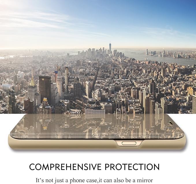 ELMO3EZZ - حافظة جلدية S23 بلس من الموعز متوافقة مع موبايل سامسونج جالاكسي S23+ 5G غطاء قلاب لمراة المكياج S23+ مسند مضاد للصدمات لسامسونج S23 5G بيج