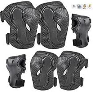 - مجموعة حماية كاملة: مجموعة معدات واقية مكونة من 6 قطع تتضمن وسادتين للركبة ووسادتين للكوع و2 واقي معصم لتوفير حماية شاملة للتزلج والتزلج وركوب الدراجات والأنشطة الرياضية الأخرى