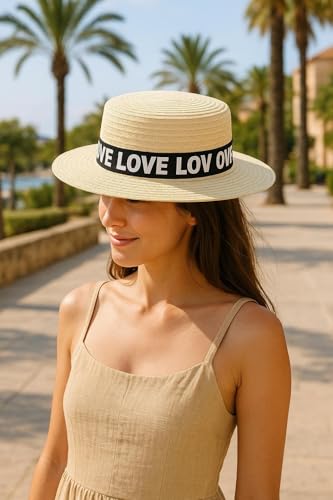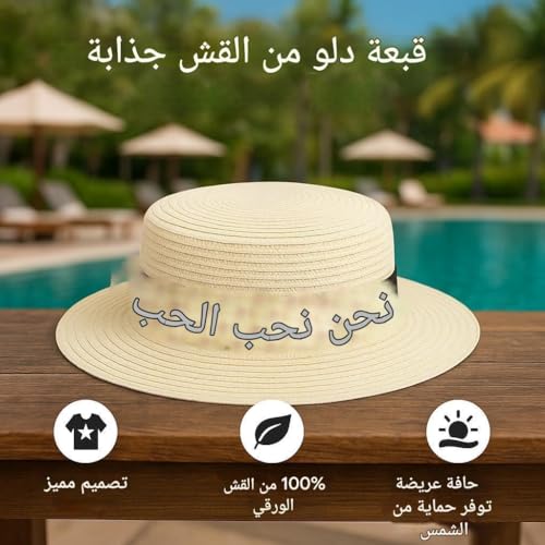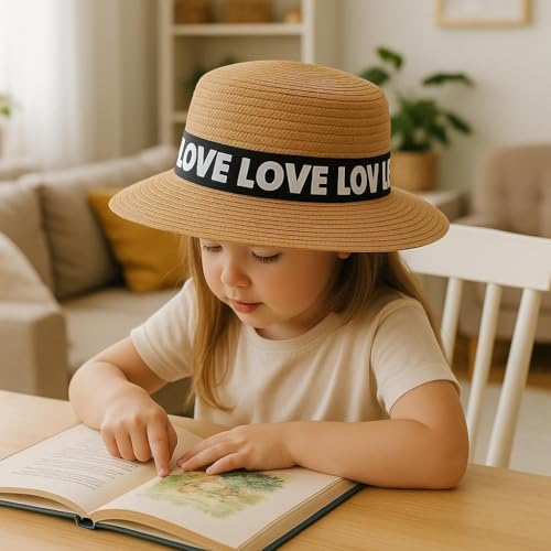 Generic - قبعة واقية - قبعة شمس عريضة الحواف من القش الورقي مع شريط الحب، ضرورية للحماية من الشمس أثناء الاستمتاع بالهواء الطلق