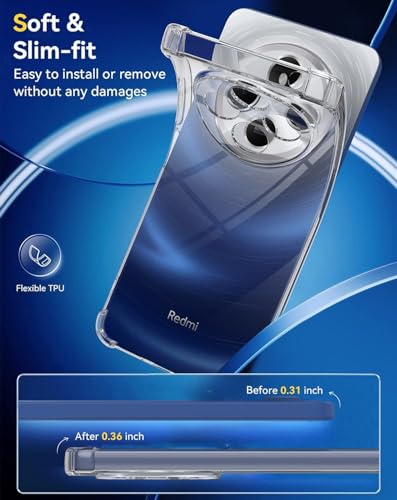 Generic - جراب واقي ممتص للصدمات ناعم وشفاف مع حامل فتحة للبطاقات لموبايل شاومي ريدمي 14C / شاومي بوكو C75 (شفاف)
