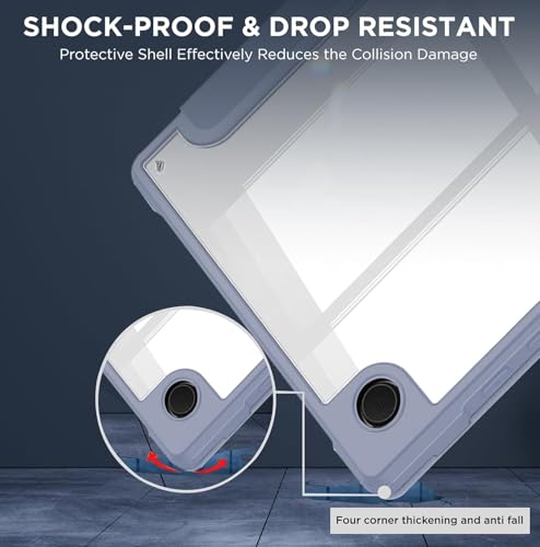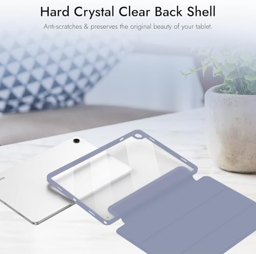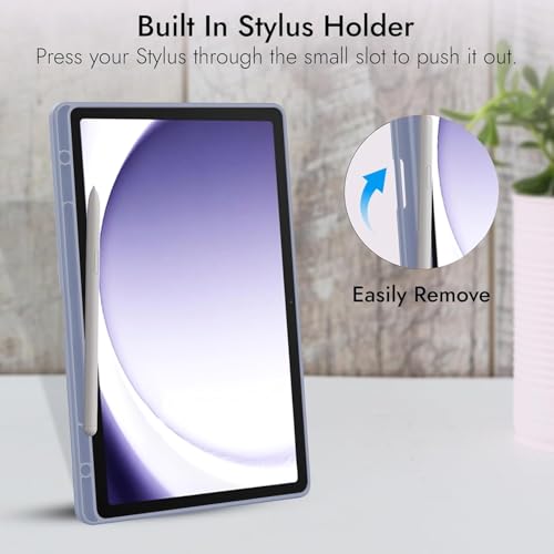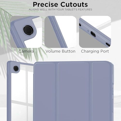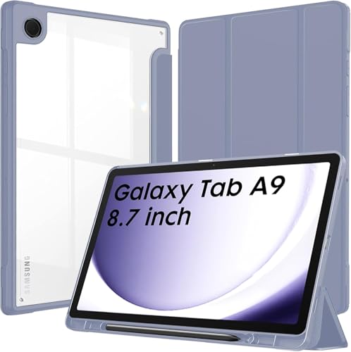 ELMO3EZZ - حافظة حماية رفيعة بظهر شفاف وغطاء إطار مقاوم للصدمات من البولي يوريثين الحراري مع حامل قلم وخاصية النوم التلقائي متوافقة تابلت سامسونج جالاكسي تاب A9 SM-X110 مقاس 8.7 بوصة المعز - لون لافندر