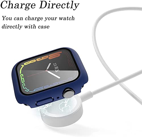 Generic - غطاء حماية لساعة ابل سلسلة 7 45 ملم - ازرق، زجاج مقسى