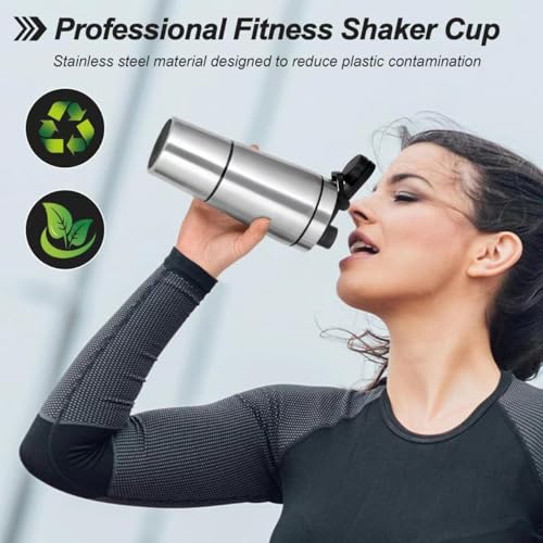 - 💪【تساعد على إنقاص الوزن والحفاظ على صحتك】تم تصميم زجاجة شيكر للبروتين المصنوعة من الفولاذ المقاوم للصدأ لتناسب حجم راحة اليد للرجال والنساء الأوروبيين. يمكنك العثور على المكان المثالي لوضع كوب البروتين الخاص بك وشرب خليط البروتين. كمكمل رياضي للمحترفين، يمكن أن يساعدك على إنقاص الوزن بسرعة والبقاء بصحة جيدة.