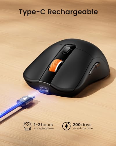 ProtoArc - ماوس بلوتوث لاسلكي من بروتو ارك، ماوس USB C، EM15 قابل لاعادة الشحن، ماوس لاسلكي محمول من النوع C للابتوب والتابلت والكمبيوتر الشخصي وويندوز وماك او اس - اسود
