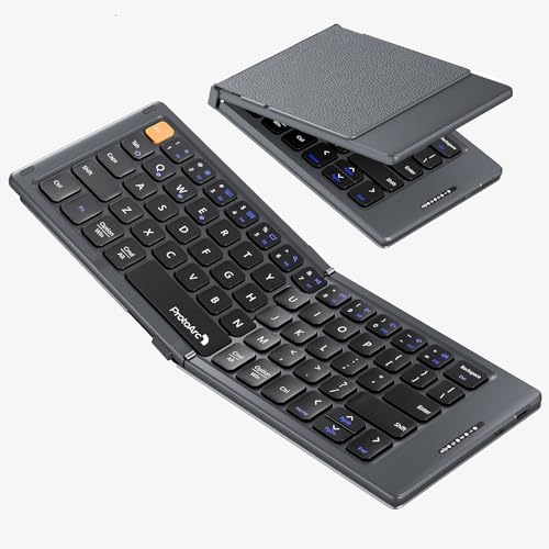 ProtoArc - كيبورد صغير الحجم قابل للطي XK04 من بروتو ارك، كيبورد بلوتوث محمول مع غطاء من جلد البولي يوريثين، كيبورد لاسلكي بحجم الجيب مناسب للسفر لايباد وايفون وماك واندرويد وويندوز وiOS - رمادي