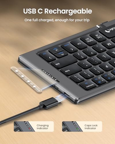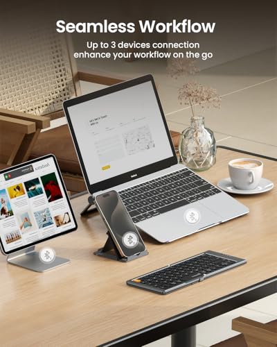- 【كيبورد متعددة الأجهزة】كيبورد لاسلكية قابلة للطي مع قنوات بلوتوث ثلاثية، والتي ستحافظ على اتصال مستقر واستجابة سريعة ضمن نطاق تشغيل 33 قدم. يدعم ما يصل إلى 3 أجهزة مثل الايباد أو الهاتف الذكي أو التابلت أو اللاب توب. يمكن أن يكون شريكك المثالي لمساعدتك على الرد على رسائل البريد الإلكتروني أو تحرير أوراق اكسل أو كتابة أفكارك في أي وقت
