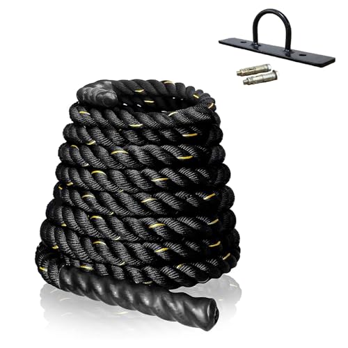 Protoner - حبل تدريب من بروتونر، بسُمك 3.81 سم، بطول 914 سم / 1219 سم / 1524 سم، مع خطاف جداري للتثبيت، أسود