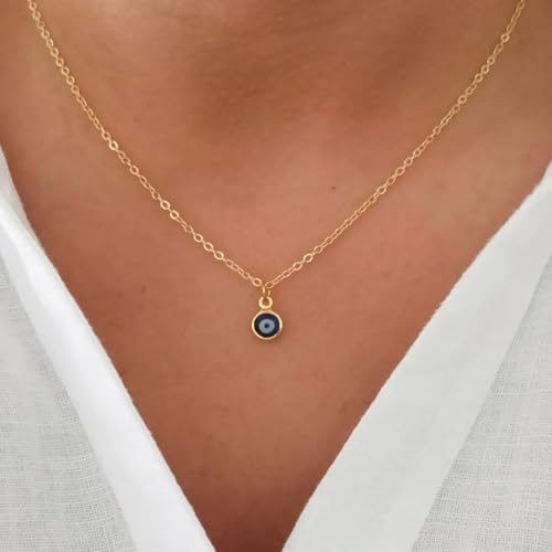 PRTGL - عقد أنيق مطلي بالذهب عيار 14 قيراط/مطلي بالذهب الأبيض انفينيتي عين الحسد على شكل فراشة كاوبوي وقلب وقمر وقلب للنساء من بي ار تي جي ال
