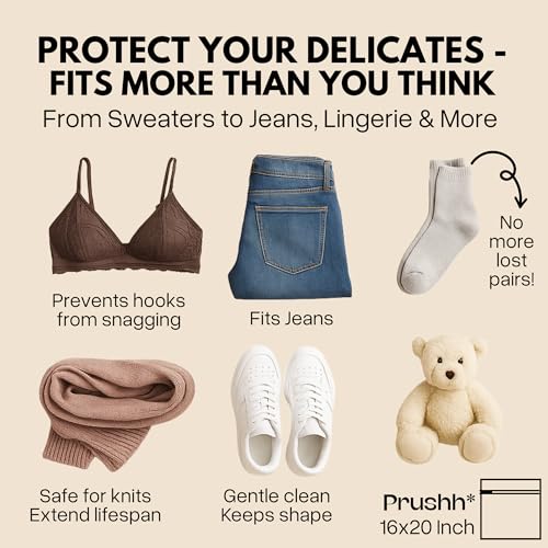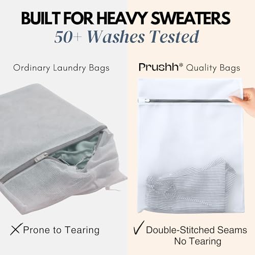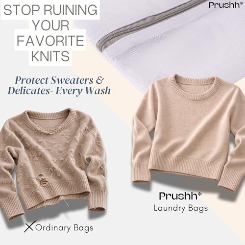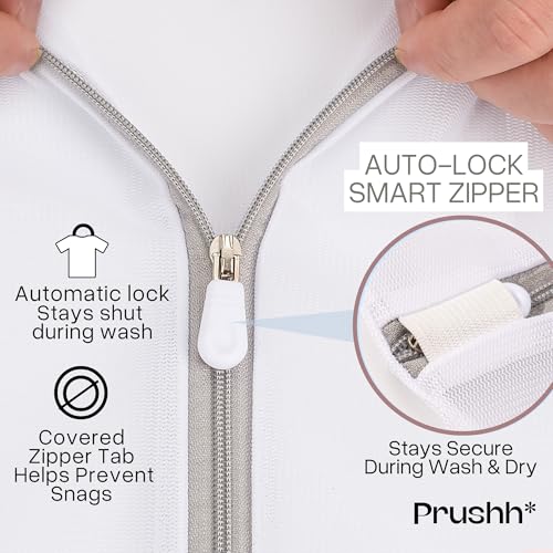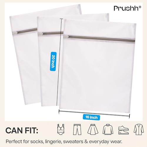 Prushh - أكياس غسيل شبكية متينة لحماية للملابس الحساسة بشبكة دقيقة للغسيل والتجفيف بشكل موحد وسوستة إغلاق أتوماتيكية لطيفة على الغسالة للمنزل أو السكن الجامعي أو التخزين، 3 قطع (41 × 51 سم