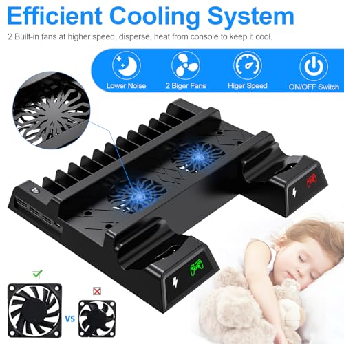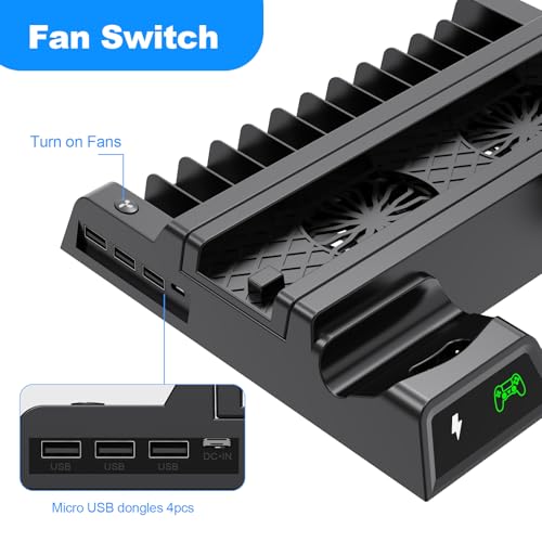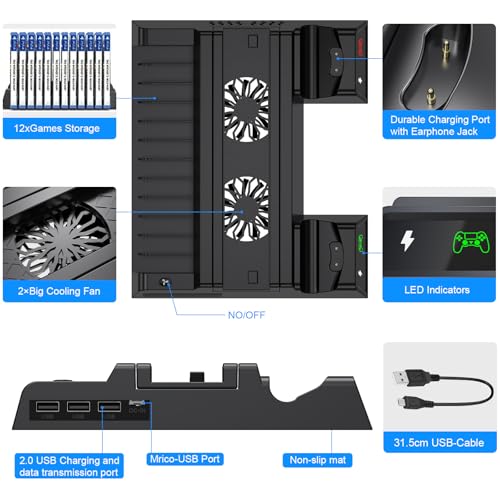 ASUNCELL - شاحن بتقنية USB، متوافق مع أجهزة الألعاب، بمنفذين، مع حامل وقاعدة شحن مزدوجة لذراع تحكم PS4 و12 فتحة ألعاب