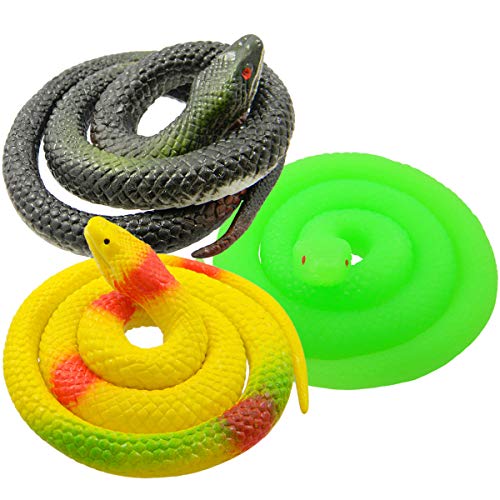 zain - ثعابين مطاطية واقعية من بي سمايل، ثعابين مزيفة، ألعاب ثعابين تتوهج في الظلام، لون أصفر وأسود وأخضر، 3 قطع