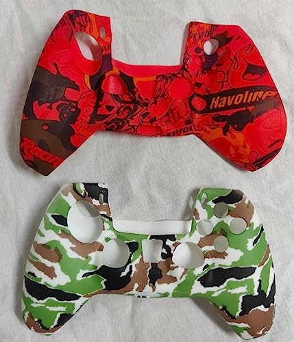 PSS - قطعتان من جراب سيليكون لذراع تحكم بلاي ستيشن، 2 واقي مضاد للانزلاق من مطاط السيليكون الناعم متوافق مع ذراع تحكم بلاي ستيشن 5 من بي اس اس، بلون أحمر مموه / أزرق مموه