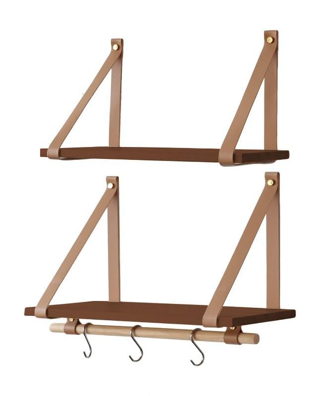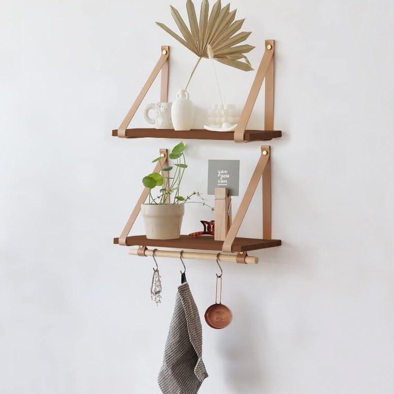 - أرفف معلقة على الحائط بتصميم بسيط وأنيق لتحسين منزلك مع أحزمة من الجلد الصناعي السميك والقوي
