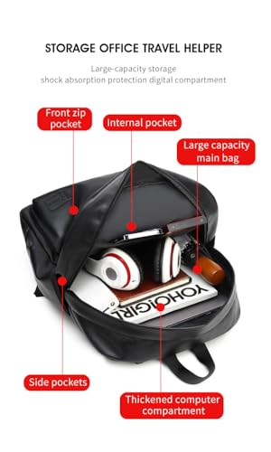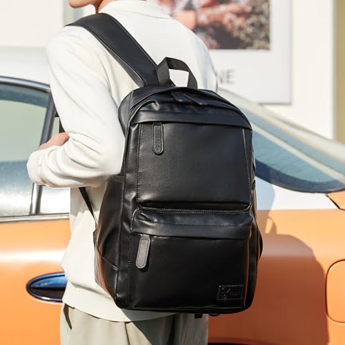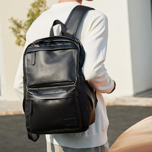Rahala - شنطة ظهر من الجلد الصناعي للرجال والنساء 18l 15.6 انش، شنطة لابتوب بسعة عالية للمكتب والسفر والكلية والاستخدام اليومي - GLD112 - بني