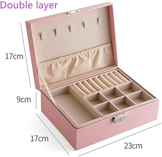 - صندوق مجوهرات للنساء، صندوق مجوهرات من جلد صناعي يستخدم للحلقان والخواتم والأساور