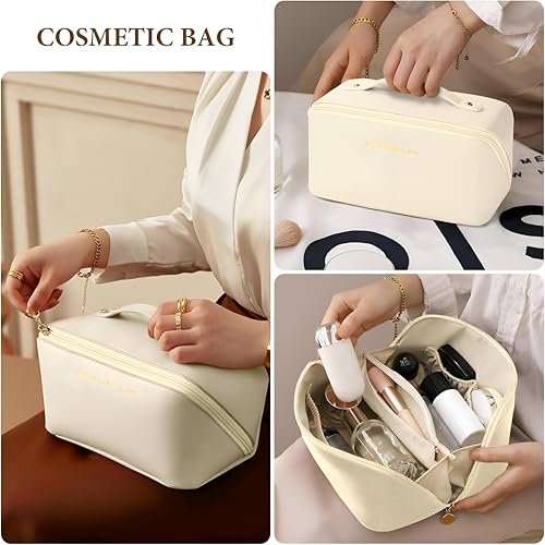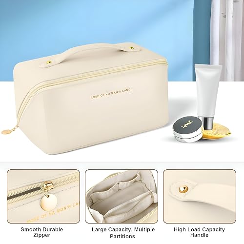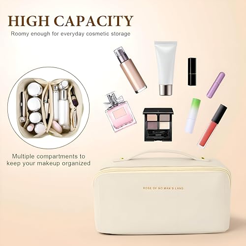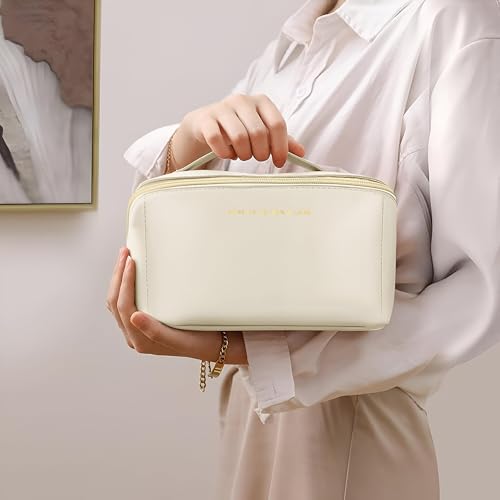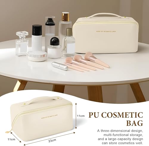 Generic - شنطة مكياج من جلد البولي يوريثين - شنطة سفر أنيقة وعملية لجميع احتياجاتك التجميلية (بيج فاتح)