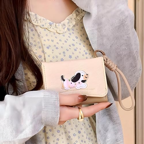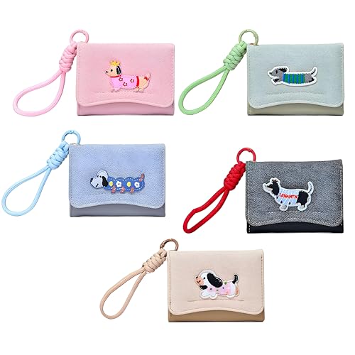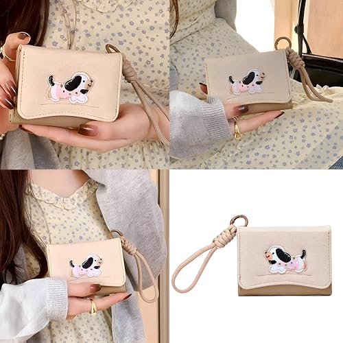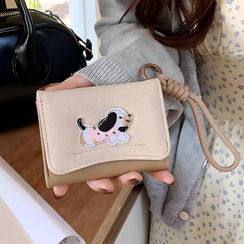 Generic - محفظة من الجلد الصناعي، محفظة قصيرة بتصميم كلب كرتوني مرح، حامل كروت صغير مريح للعملات المعدنية والبطاقات