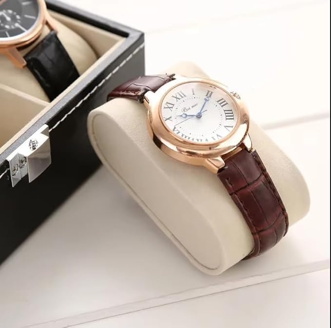 - تصميم فريد: وسادة الساعة ذات الشكل والقابلة للإزالة تسمح لساعاتك بالبقاء في الشكل الصحيح أثناء التخزين. سهل التنظيف، تحتاج فقط إلى مسح منظم حقيبة العرض بقطعة قماش