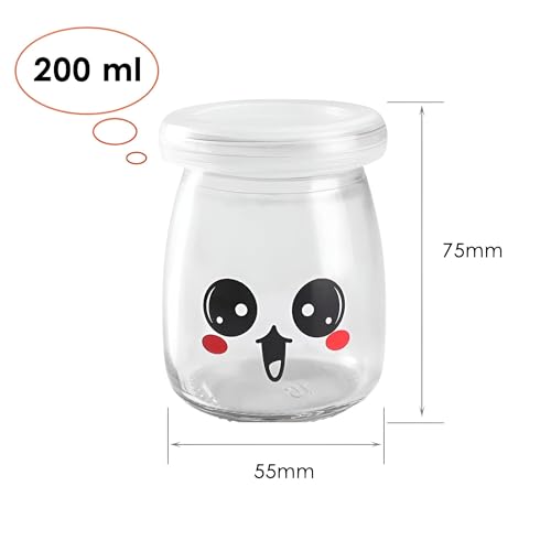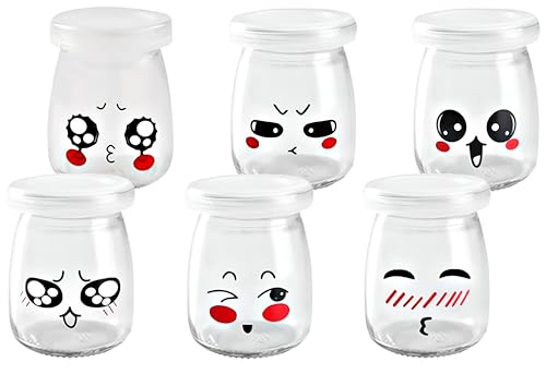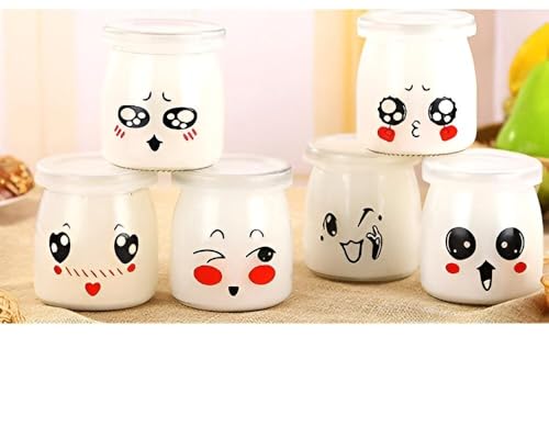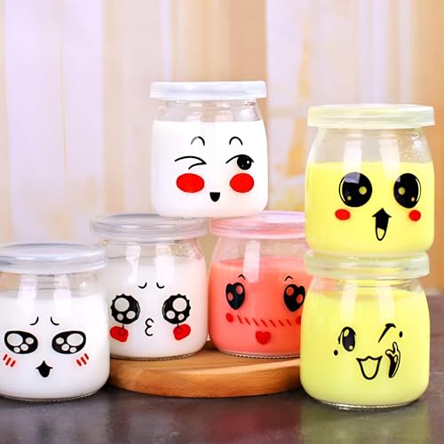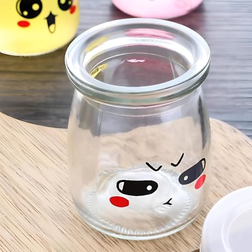 Generic - أوعية بودينج برطمانات زجاجية مع أغطية بطبعة رموز تعبيرية للحلويات والزبادي والإضافات سهلة التخزين بالإضافة إلى أغطية بلاستيكية متينة 100 مل، مجموعة من 10 قطع