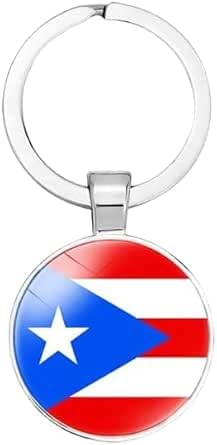 Generic - سلسلة مفاتيح بعلم بورتوريكو، تصميم العلم الوطني ثلاثي الالوان، حلقة مفاتيح معدنية فضية تذكارية لمشجعي فريق كرة القدم