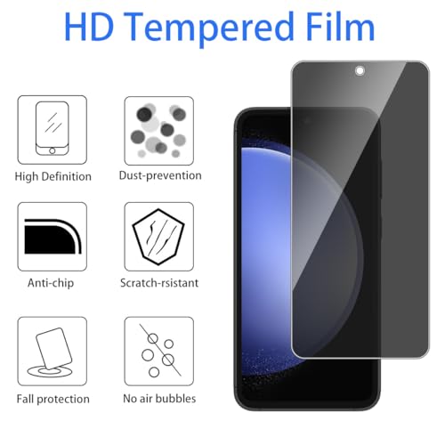 PUKMCX - شاشة حماية خصوصية مناسبة للجراب من الزجاج المقوى ومضادة للتجسس وفائقة الدقة خالية من الفقاعات ومضادة للخدش وسهلة التركيب لموبايل سامسونج جالاكسي S24 FE من بوكمكس، 3 قطع