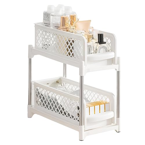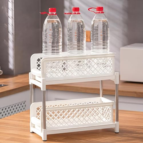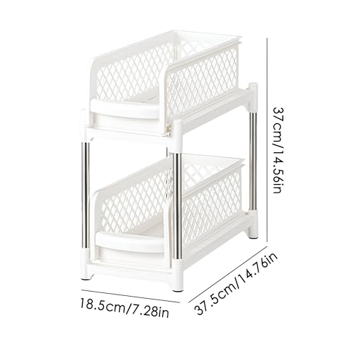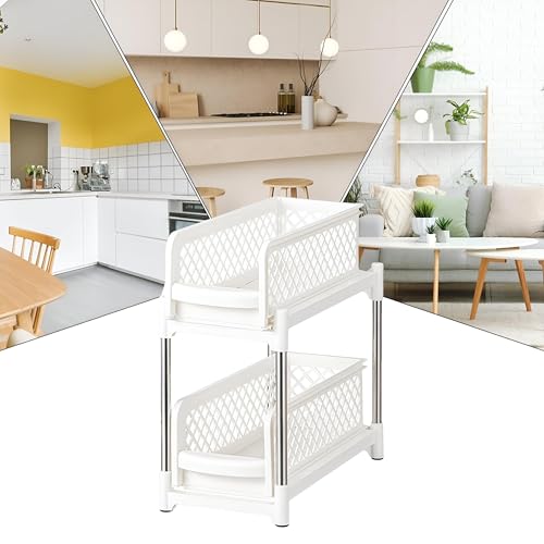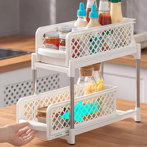 Generic - منظم قابل للسحب لدواليب المطبخ، مصمم بمتانة عالية لسهولة الوصول واستغلال المساحة، يحتوي على طبقتين لتنظيم أفضل داخل دواليب مطبخك (أبيض)